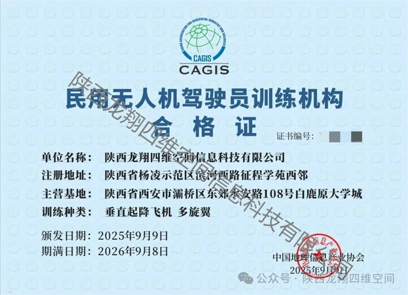 恭喜陕西龙翔四维空间信息科技有限公司斩获民用无人机驾驶员训练机构合格证!这是专业实力的硬核*,也是信任的基石,愿以此为起点,培育更多*飞手+行业应用,为无人机行业*发展注入强劲动力!!!
